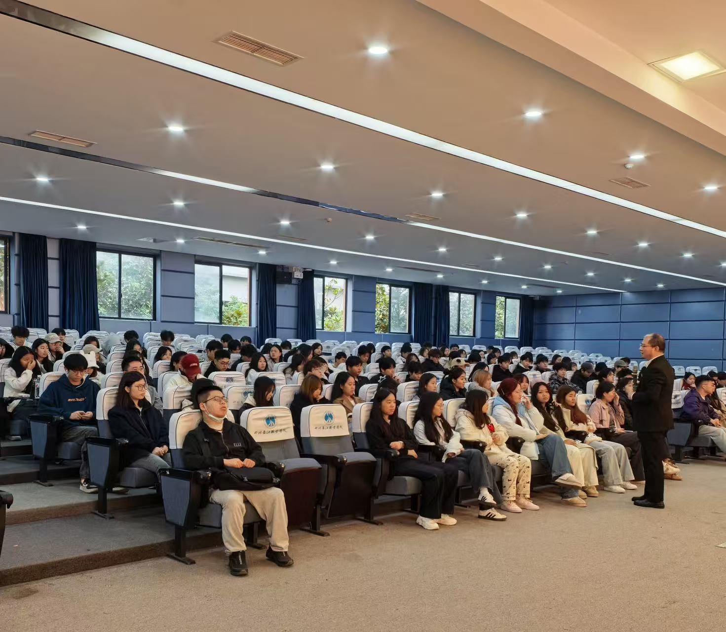 【本网消息】(商贸与融媒体学院 李欣雨供稿)为培养学生职场能力、助力适配职业素养要求,11月5日,商贸与融媒体学院2024级职业素养教育专题讲座在新学术报告厅举行,本次讲座特邀拥有央企、上市公司多场景管理经验的邢琼川老师主讲,2024级辅导员陈伟旭、杜祥、李畅、李欣雨、熊灿、张芳及各专业代表200余人到场参加。