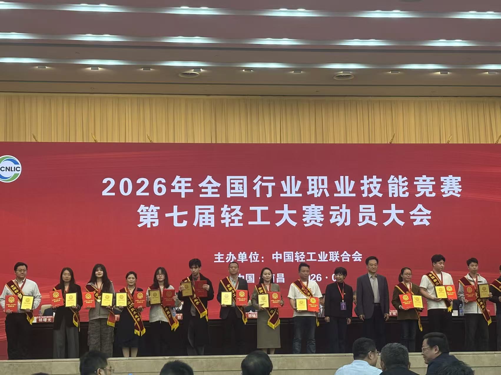 会上,李晓菲、谭希瑞凭借在2025年全国轻工第五届互联网营销师职业技能大赛中的优异表现,分获单人直播赛项、单人视频创推赛项一等奖,并被授予 “全国轻工技术能手” 荣誉称号。
